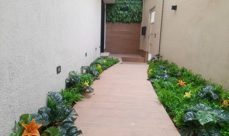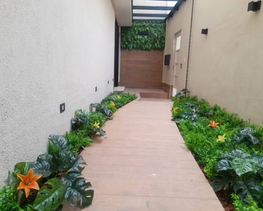 Oferecemos soluções em paisagismo que integram estética e funcionalidade, proporcionando áreas verdes harmônicas e sustentáveis que promovem bem-estar e conexão com a natureza em todos os ambientes. Seja com plantas naturais ou artificiais temos a solução!