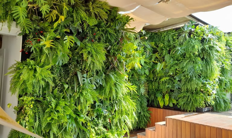 Nossos jardins verticais transformam espaços, trazendo vida e natureza para ambientes internos e externos com design sustentável e soluções personalizadas que encantam clientes e visitantes.
